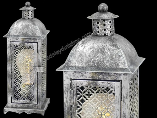 Gümüş Gri Klasik İşlemeli Masa Lambası