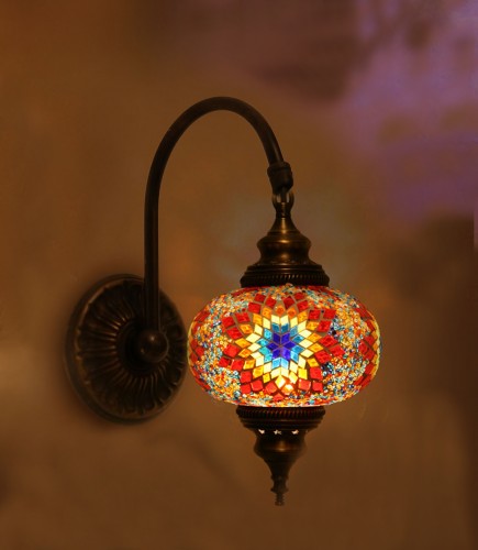 Lamp is made of original color glass. Metal part is made of high quality brass so there will be no color change on glass part and no oxidation on brass part. It might come with different mosaic design.