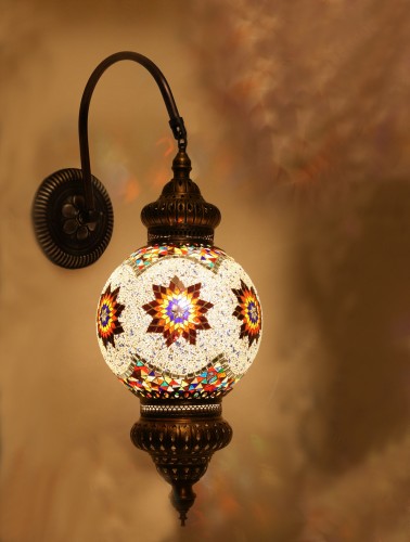Lamp is made of original color glass. Metal part is made of high quality brass so there will be no color change on glass part and no oxidation on brass part. It might come with different mosaic design.