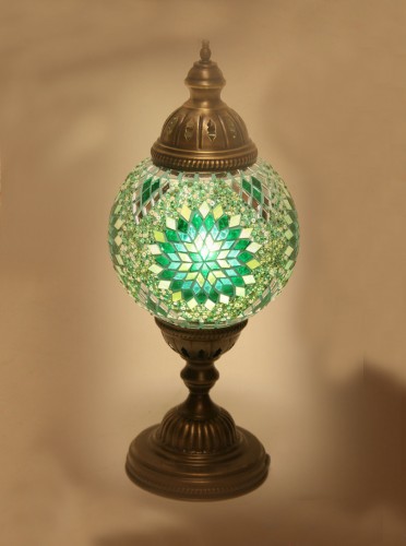 Lamp is made of original color glass. Metal part is made of high quality brass so there will be no color change on glass part and no oxidation on brass part. It might come with different mosaic design.