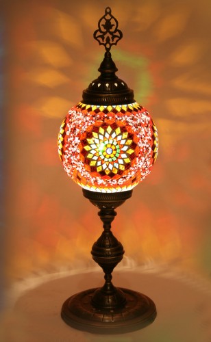 Lamp is made of original color glass. Metal part is made of high quality brass so there will be no color change on glass part and no oxidation on brass part. It might come with different mosaic design.