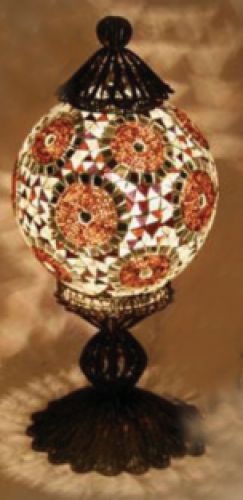 Lamp is made of original color glass. Metal part is made of high quality brass so there will be no color change on glass part and no oxidation on brass part. It might come with different mosaic design.